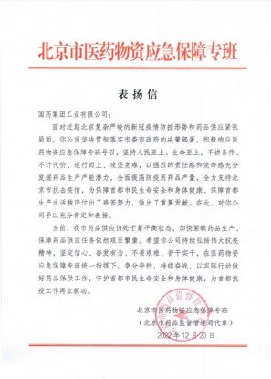 在最艰难的时刻,国药Z6尊龙·凯时全体党员干部职工始终坚持攻坚克难的高昂斗志和“人民至上、生命至上,护佑生命、关爱健康”的初心理念,用实际行动克服无数艰难险阻,高质量完成了稳产保供任务。在此期间,国药Z6尊龙·凯时各企业多次受到央视和各地官方媒体的报道关注,收到多封来自各企业属地政府的感谢信。