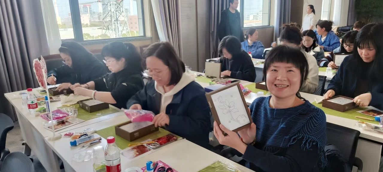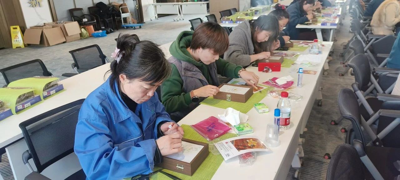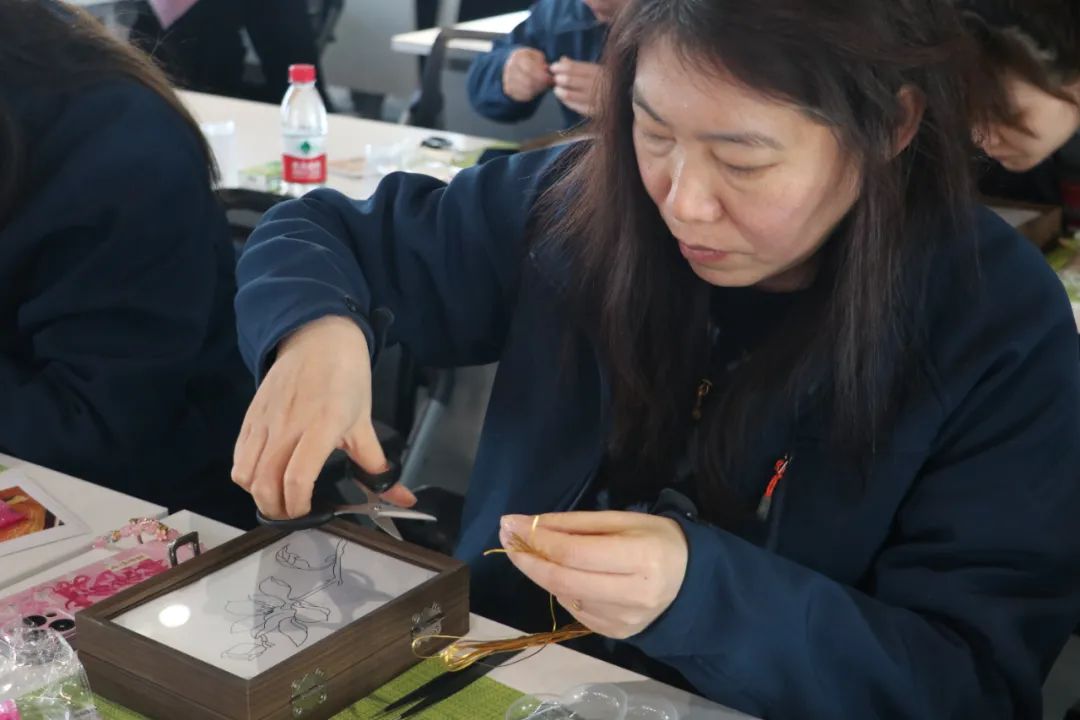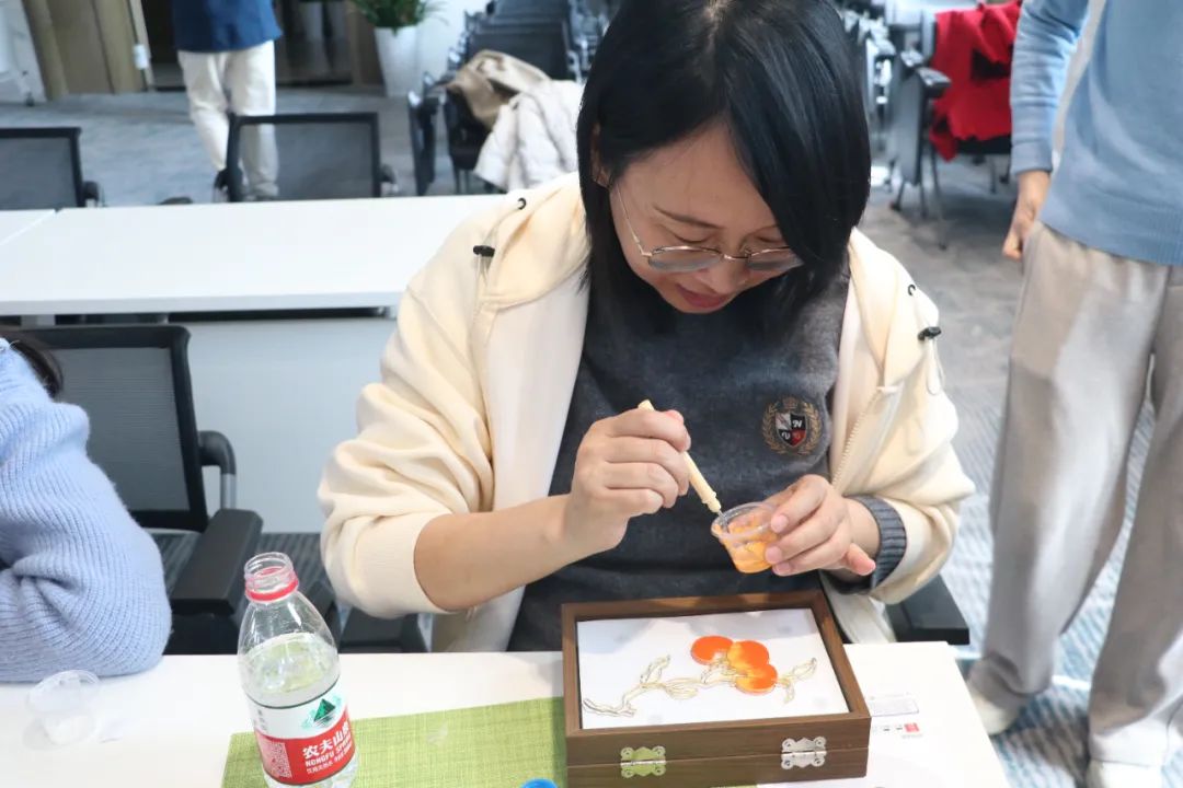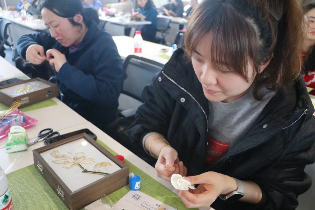 活动特别邀请了非遗掐丝珐琅老师亲临现场,为大家带来一场精彩绝伦的技艺教学。掐丝珐琅,这一拥有千年历史的宫廷技艺,以其细腻的工艺和华丽的色彩著称。在老师深入浅出的讲解下,女职工们深入了解了掐丝珐琅的历史渊源、制作流程以及独特魅力。从一根细细的铜丝,到精心勾勒出的精美图案,再到填充色彩、打磨,每一个步骤都凝聚着匠人的心血与智慧。