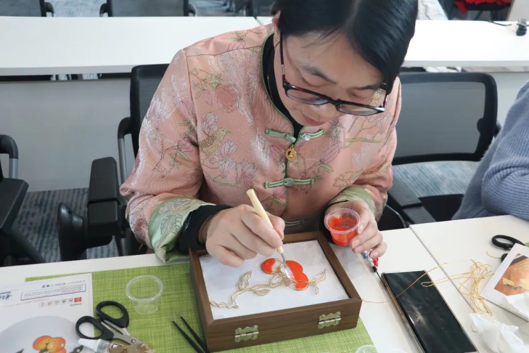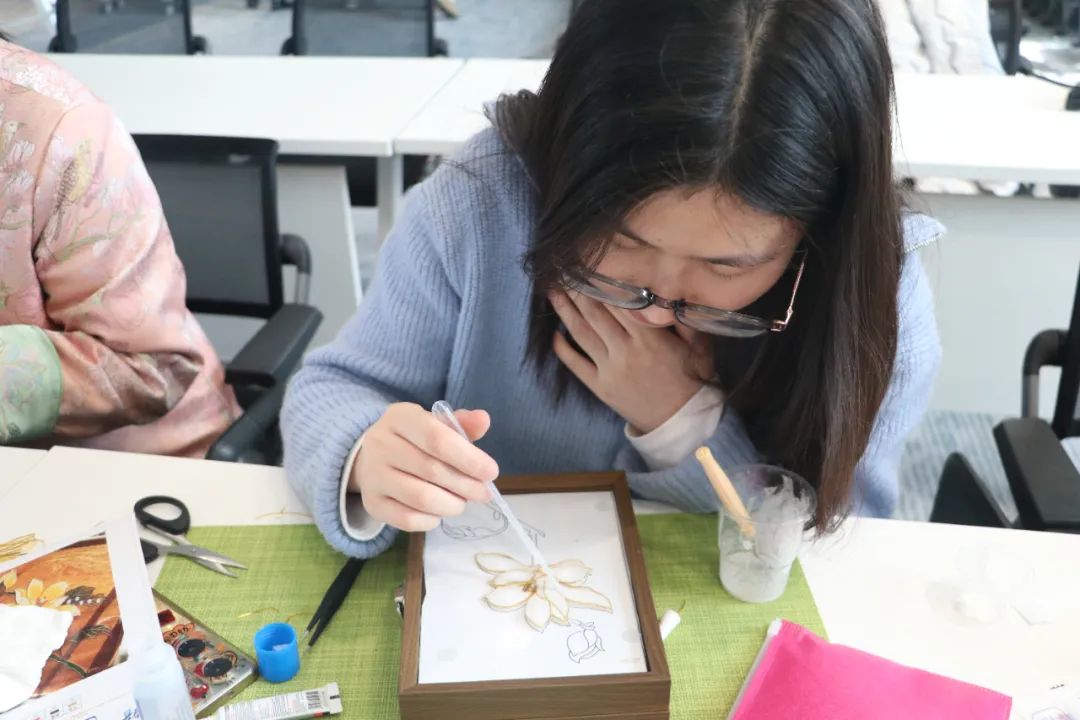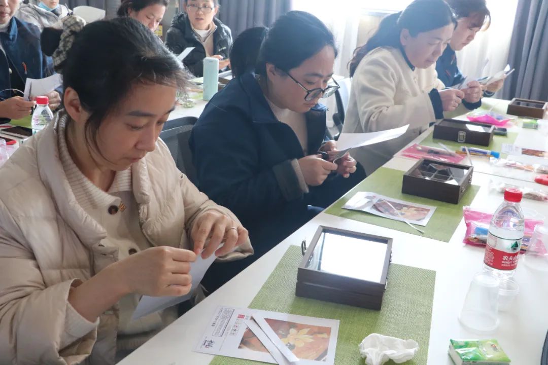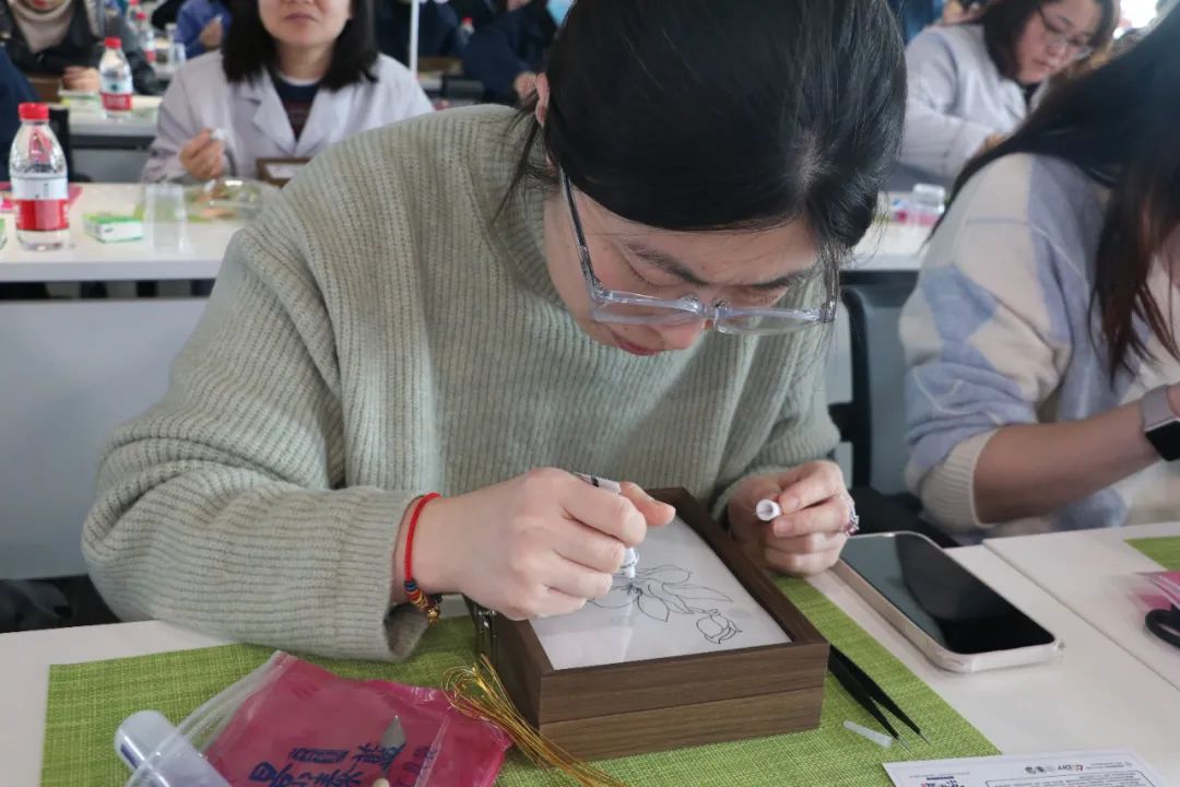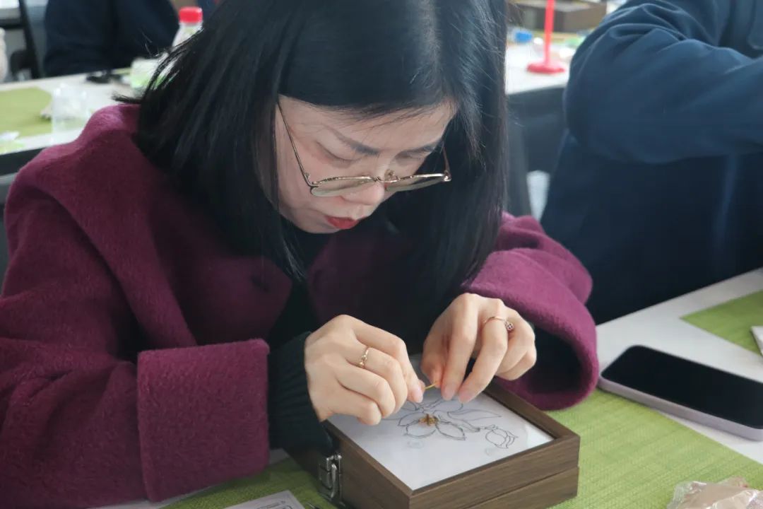 活动特别邀请了非遗掐丝珐琅老师亲临现场,为大家带来一场精彩绝伦的技艺教学。掐丝珐琅,这一拥有千年历史的宫廷技艺,以其细腻的工艺和华丽的色彩著称。在老师深入浅出的讲解下,女职工们深入了解了掐丝珐琅的历史渊源、制作流程以及独特魅力。从一根细细的铜丝,到精心勾勒出的精美图案,再到填充色彩、打磨,每一个步骤都凝聚着匠人的心血与智慧。