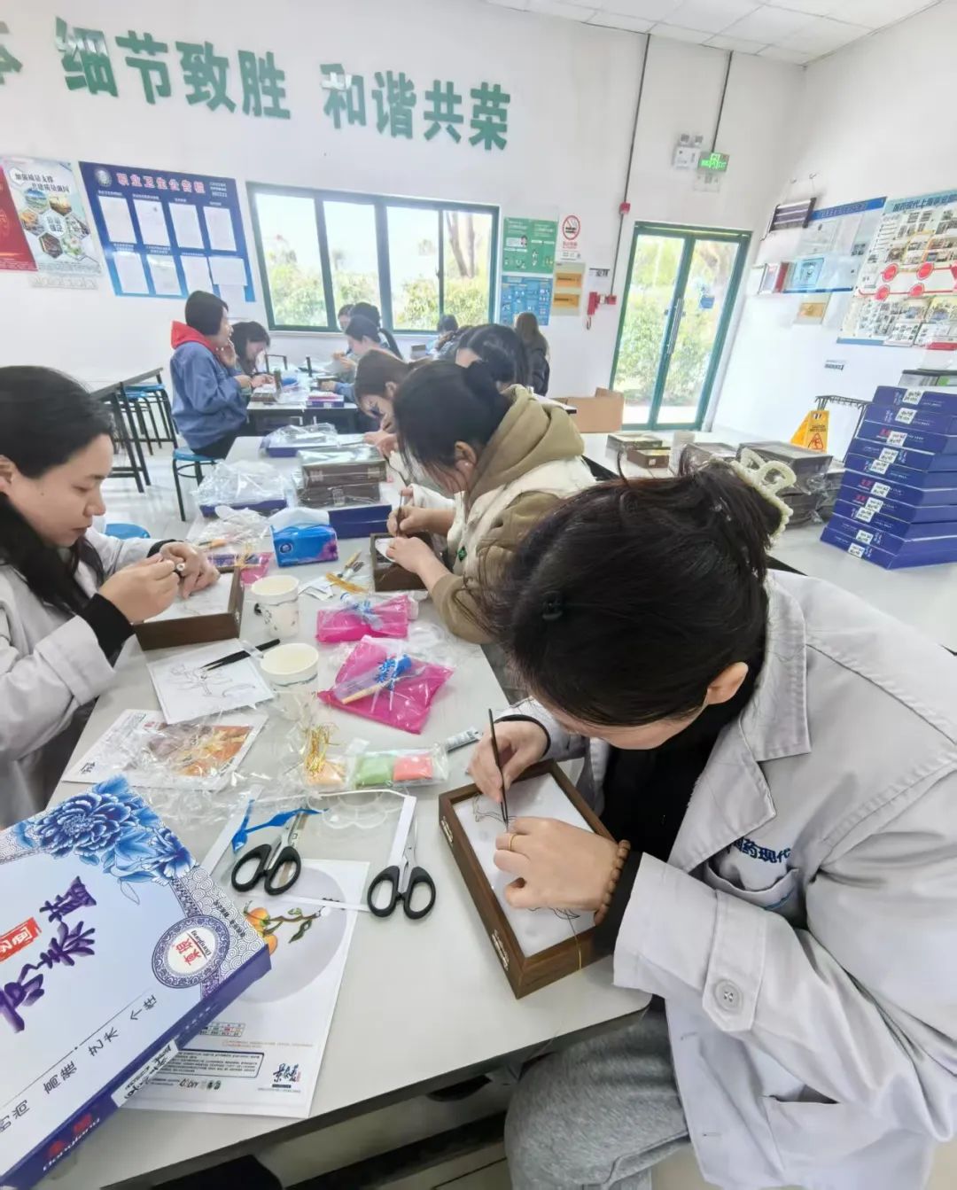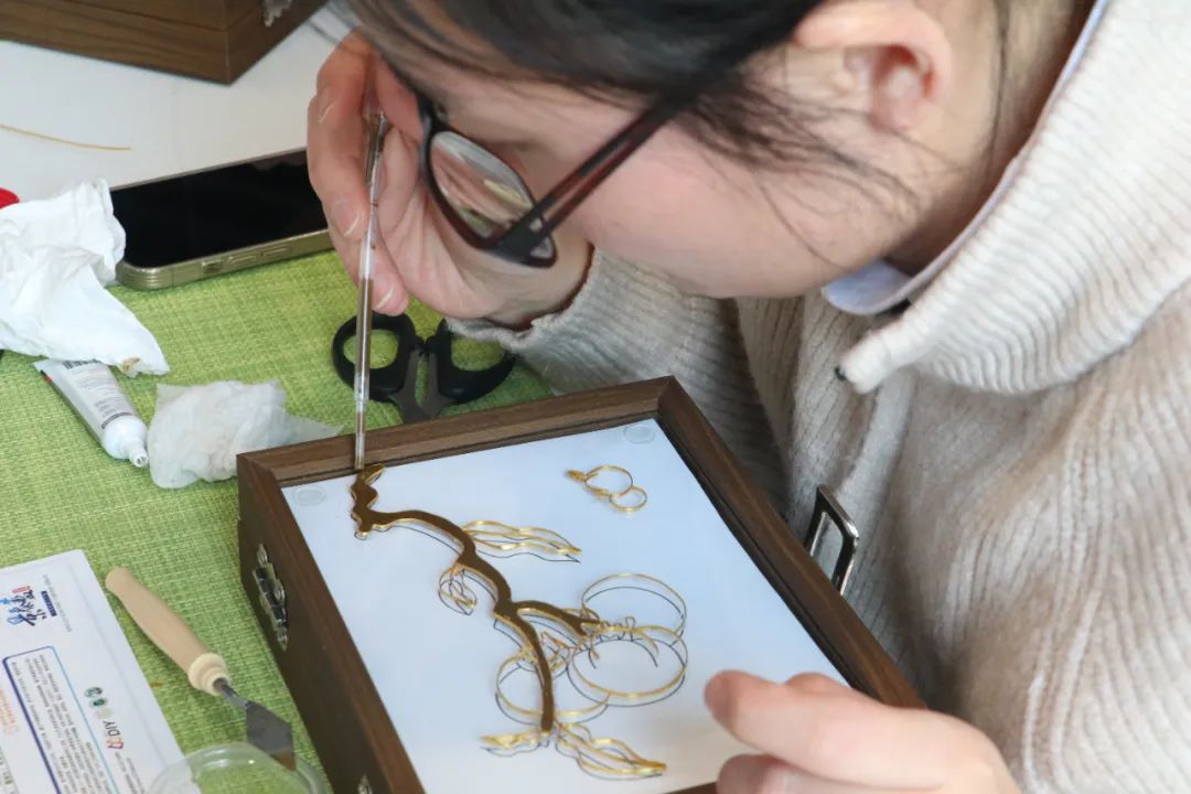 现场气氛热烈非凡,女职工们纷纷沉浸在创作的乐趣之中。大家充分发挥自己的想象力和审美能力,将千年宫廷技艺与Z6尊龙·凯时设计理念巧妙融合。在亲手制作珐琅首饰盒的过程中,她们全神贯注,精心掐丝、细致填色,每一个动作都充满了对美的追求和对传统技艺的尊重。经过数小时的努力,一个个独一无二的珐琅首饰盒在女职工们的手中诞生,这些作品不仅展现了她们精湛的技艺,更闪耀着新时代女性的智慧光芒。