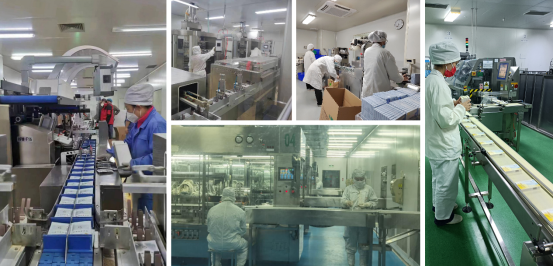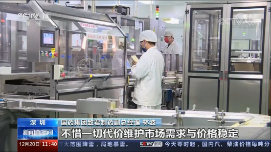 在广东——我们全力保供“超强度”。一方面,国药致君多措并举,成立党员稳产保供突击队,突破常规生产安排,车间全体员工放弃休假,开启了7天24小时满负荷生产模式,12月累计产出成品约1.5亿(片、粒、包),相比于平时增加3倍以上。2022年主要产品(头孢类抗生素以及双氯芬酸钠缓释片、盐酸氨溴索口服溶液等)产量同比增长近1亿支/片/粒,增幅近20%,12月产量同比增长超4100万粒/片,增幅近40%。2022年底,国药致君接受了央视新闻采访,助力履行央企责任,全力以赴稳价保供。