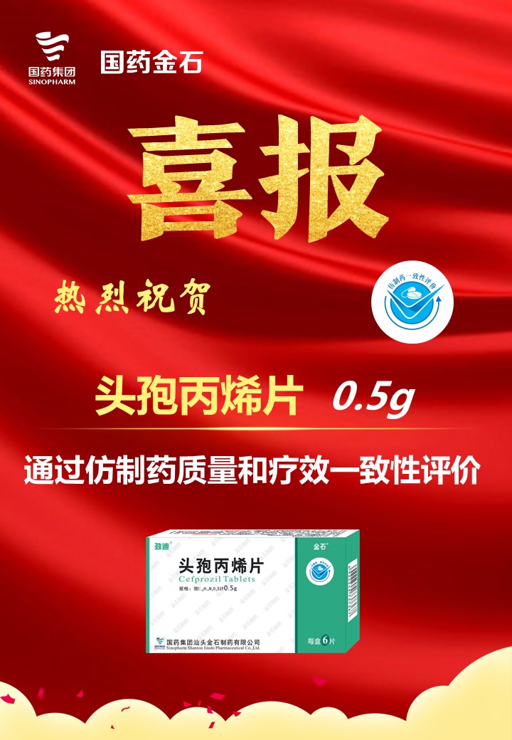 近日,国药集团汕头金石制药有限公司收到国家药品监督管理局核准签发的0.5g头孢丙烯片《药品补充申请批准通知书》,批准该药品通过仿制药质量和疗效一致性评价,这是国药金石开展一致性评价工作的又一里程碑。