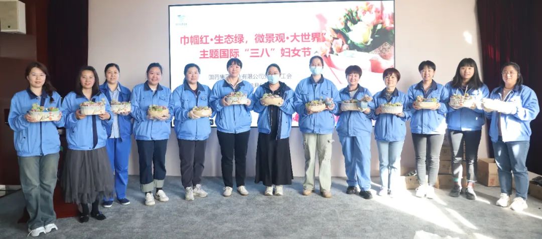 国药工业开展“巾帼红·生态绿,微景观·大世界”主题“三八”国际劳动妇女节庆祝活动,在手工制作多肉植物盆景活动中,女职工们变身巧手花匠,尽情释放自己的想象力,打造别出心裁的“纯手工盆景”,充分体会到自己动手进行多肉栽培的乐趣,并且收获了一份独一无二的“桌面盆景”。
