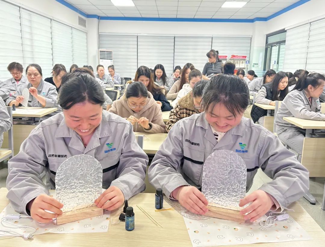 国药川抗为全体女职工准备了精美礼物,并联合当地社区精心组织了掐丝珐琅非遗体验主题活动,在专业老师的讲解指导下,开启了一场铜丝、颜料的指尖艺术盛宴,通过创意构图、掐丝勾勒、上釉点蓝、烘烤定型,一件件精美的掐丝珐琅摆件在大家的巧手下逐渐成形,沉浸式体验了传统文化的魅力。