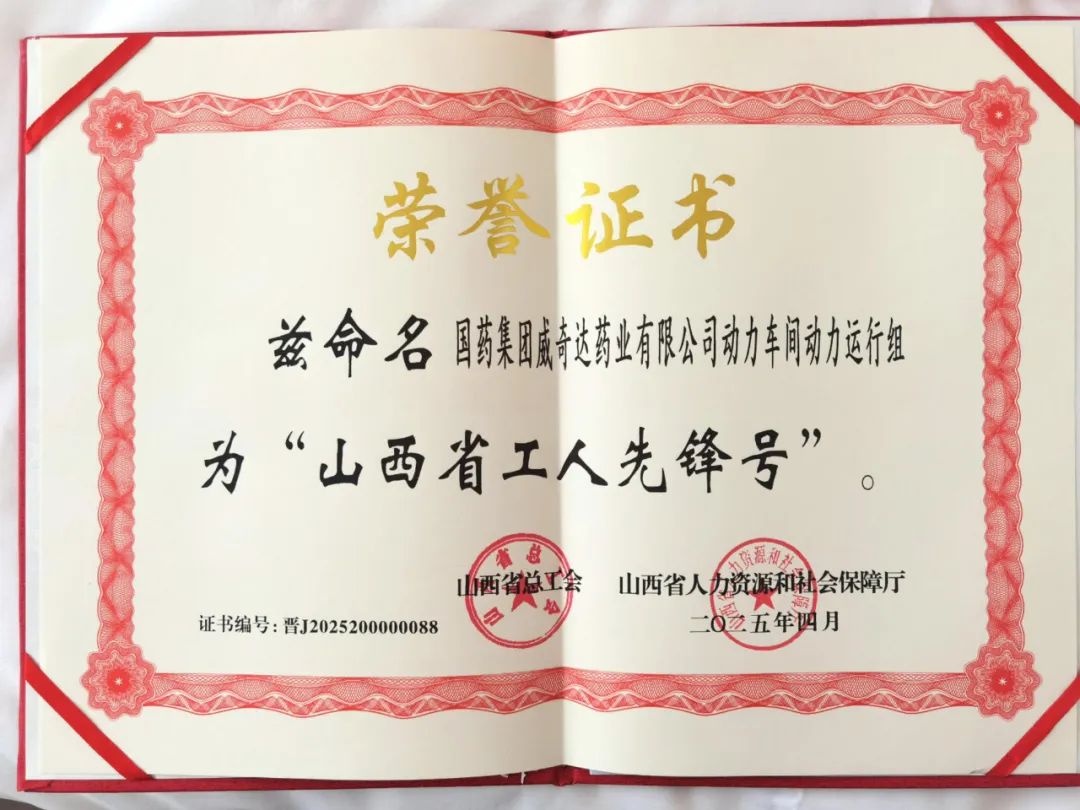 致敬劳动者丨国药威奇达动力车间动力运行组荣获“山西省工人先锋号”荣誉称号