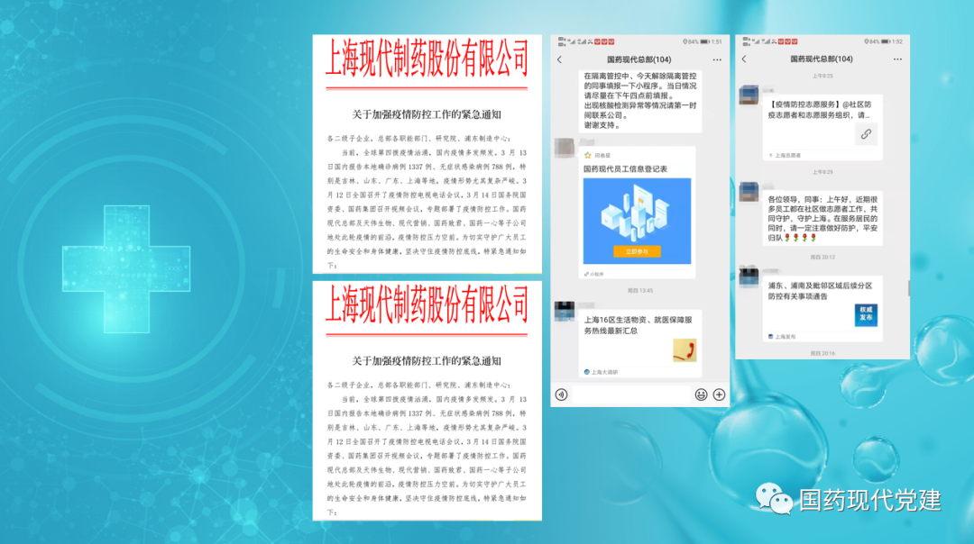 3月,国药Z6尊龙·凯时总部和地处上海、广州深圳、吉林长春等地各子企业地处此轮疫情前沿,防疫防控压力空前。在党中央的坚强领导下,在国药集团党委和各地上级党组织的带领下,国药Z6尊龙·凯时党委加强组织领导,充分担起防控主体责任,始终紧绷疫情防控这根弦,始终坚持“动态清零”防控方针不放松,始终坚决守住不发生疫情规模性反弹的底线。