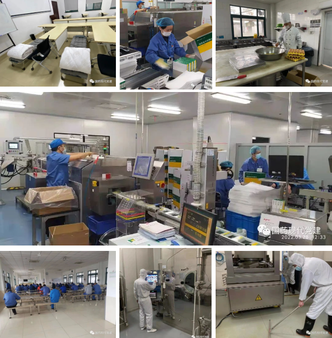 地处上海闵行区莘庄工业区的在沪子企业天伟生物,自3月15日开始,公司党政领导季晓铭、金灿煌、李严带领职工即刻陆续驻厂封闭管理,44名党员干部职工在厂区实行封闭式驻厂生活。因疫情,配送公司暂停了工作餐的配送服务,驻厂员工立即成立疫情防控组、餐饮后勤组、采购保障组、生产工作组。饿了,面条、饺子,速食就是员工们的“美味”餐食;累了,简单洗漱,就能倒头而睡,大家毫无怨言,齐心协力,有序分工,防疫防控、生产保供两不误。