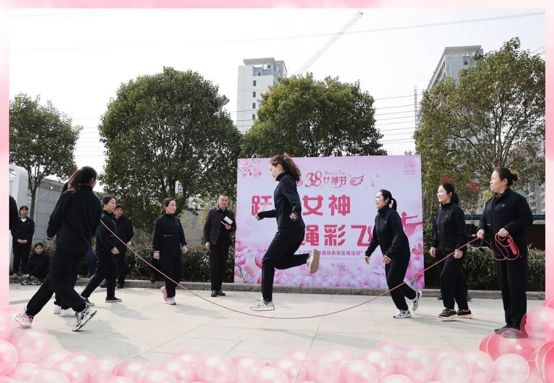 国药容生举办“跃动女神,绳彩飞扬——‘三八’妇女节趣味集体跳绳活动”,来自各部门、车间的16个小队依次上场,以“8”字阵型穿梭跳跃在比赛现场。各队队员们配合默契、身姿轻盈,如同灵动的音符在长绳间跳跃,展现了巾帼们热爱生活、积极向上的风采魅力。